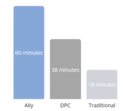 Ally Primary Care gives you another option without all the constraints insurance companies impose. By practicing Direct Primary Care (DPC), a model where patients pay the doctor directly outside of insurance, Ally Primary Care offers patients more time with the doctor and better quality care while lowering many people’s healthcare spending. No rushed appointments and no waits are not the only benefits you will find with Ally Primary Care. See for yourself:
